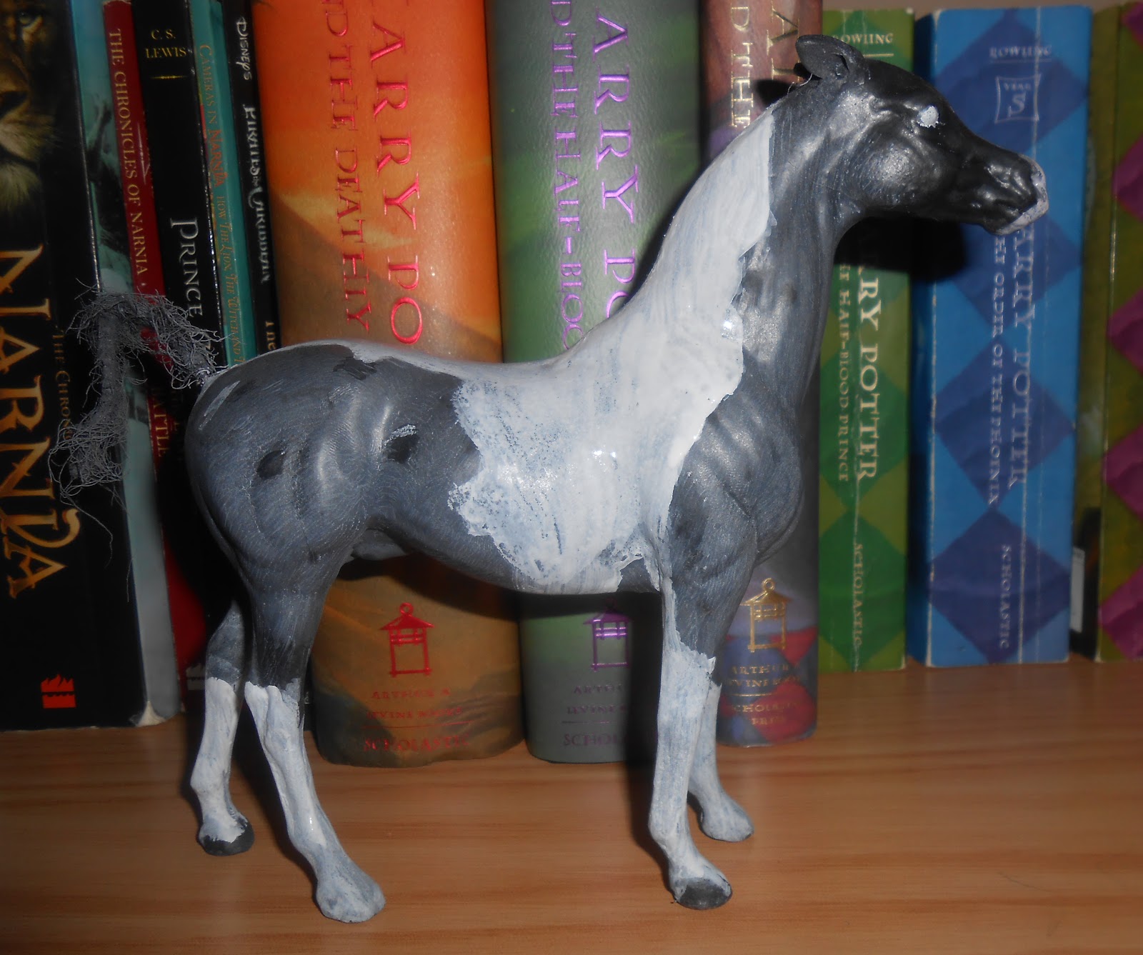 Here he is at the moment. His white markings are being blocked in, and his hooves and eyes need done, but I really like him! Once all of that’s done, he will be haired.