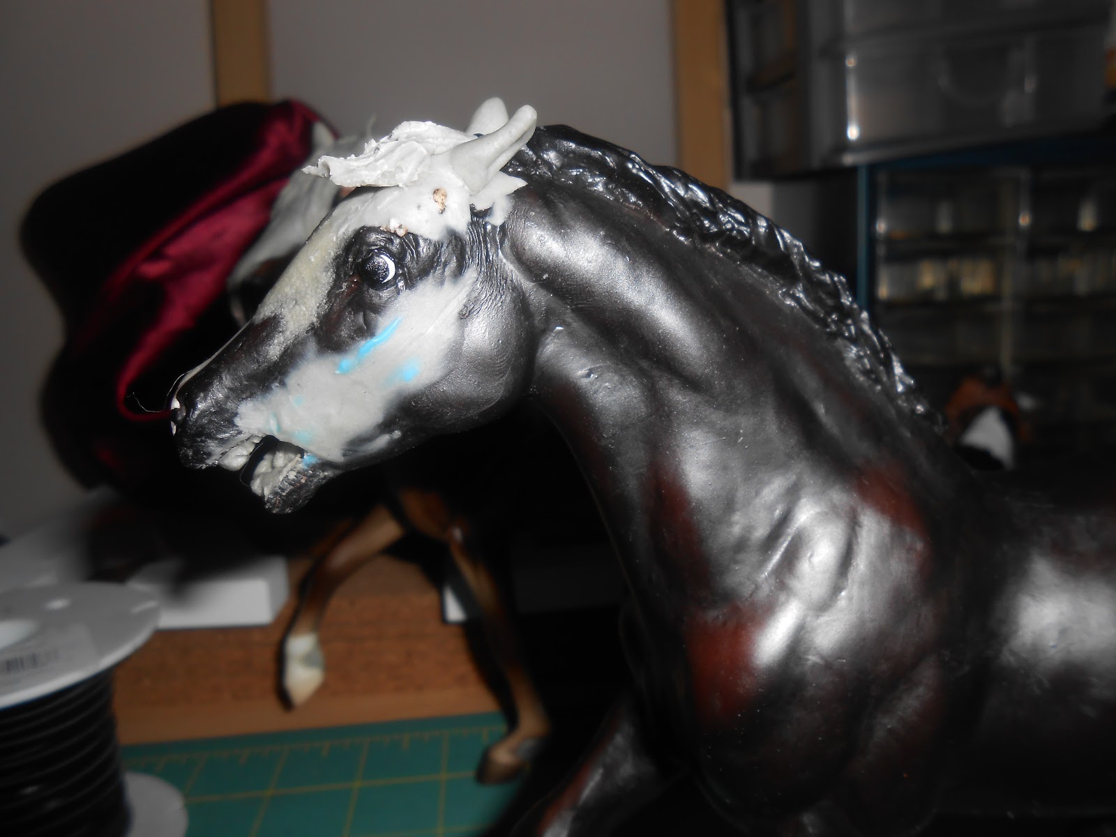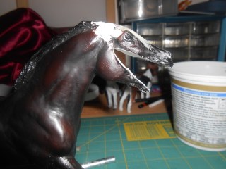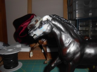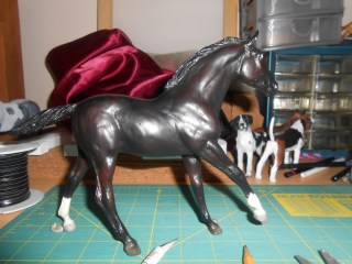 Satan. Nope nothing to do with the fallen angel, but instead Satan, The Black Stallion’s colt. Whenever I remake a model, I have a habit of trying to make it performance friendly. Well I’m doing a fun model. I bought a foal at a flea market (love love flea markets) and wasn’t sure what to do with him. Then I came across my copy of Son of The Black Stallion and it clicked. In the book, Satan, Black’s son, is described as being mean and built thick. The foal was the perfect prospect.