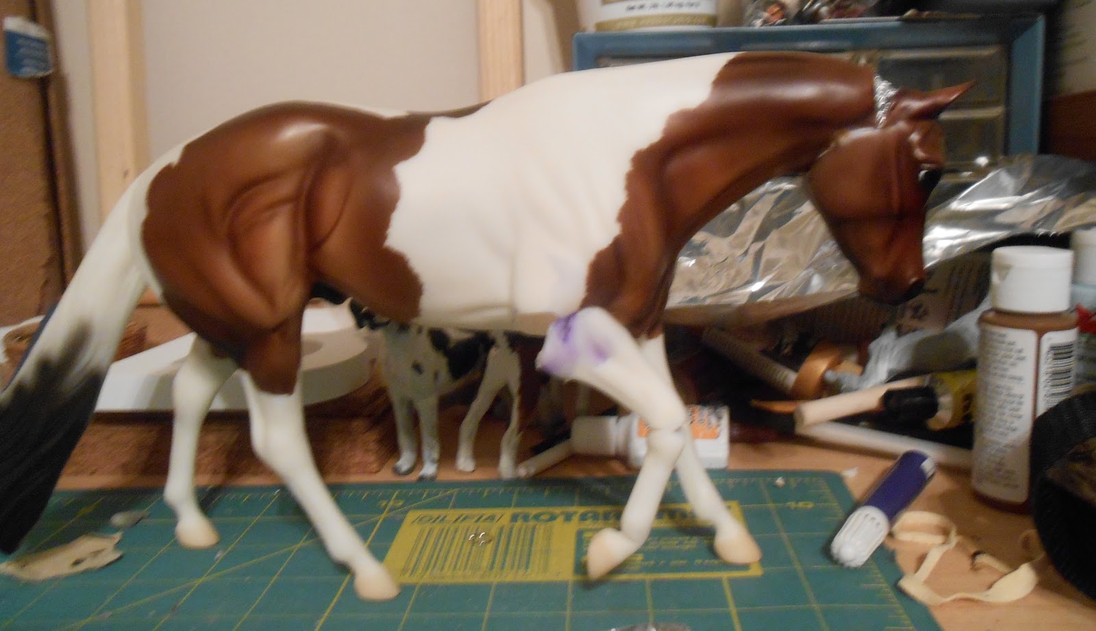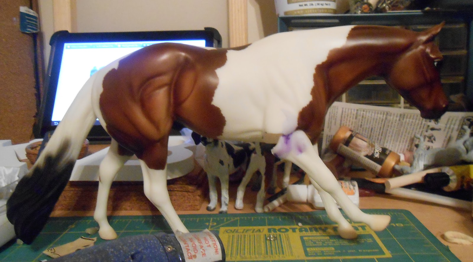 Now getting back to model horses. This guy I started during the storm, but Someone Like You (Hurricane Sandy) took up most of my time. When I first started customizing, hacking up a perfectly good OF was off limits. Back then my collection was also very small and my ears had never heard of the phrase, ‘body model.’ Today, my collection is a nice size and I always am searching for body models whenever I go to yard sales and flea markets. You never know what you may find!