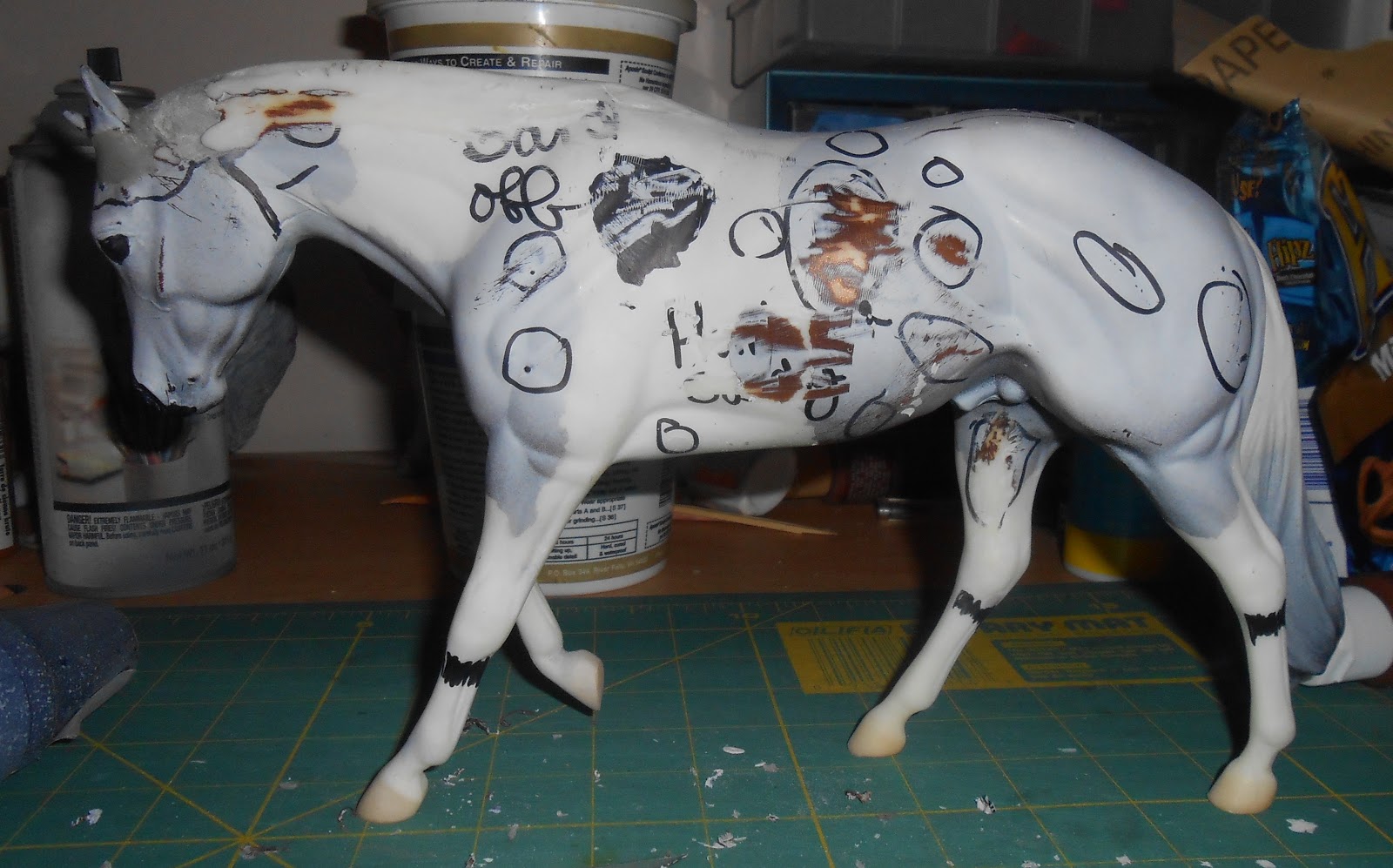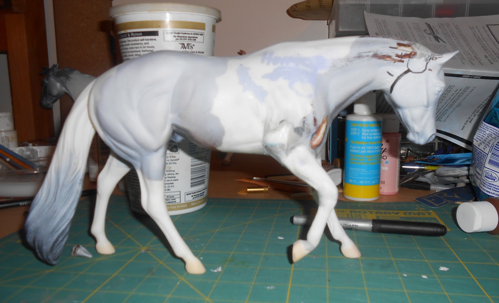 Frank-A-Storm’s front leg didn’t look right, so that needed some fixing. I added apoxie on his neck so it was stable.