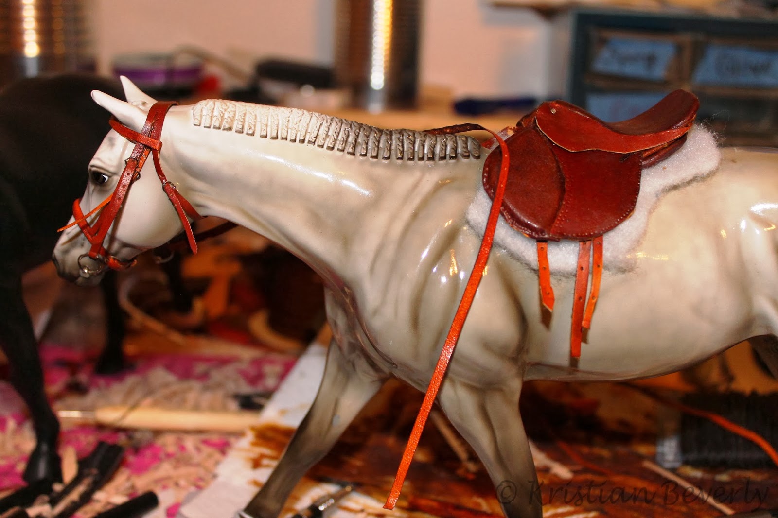 Instead of using three pieces of lace, I just used two, to mimic a real bridle. Buckles were added and all that is left are reins!
