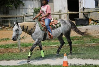She has a  beautiful dappled grey 6 year old Quarter horse mare that she trained herself named Lexus. She even has long white eyelashes!