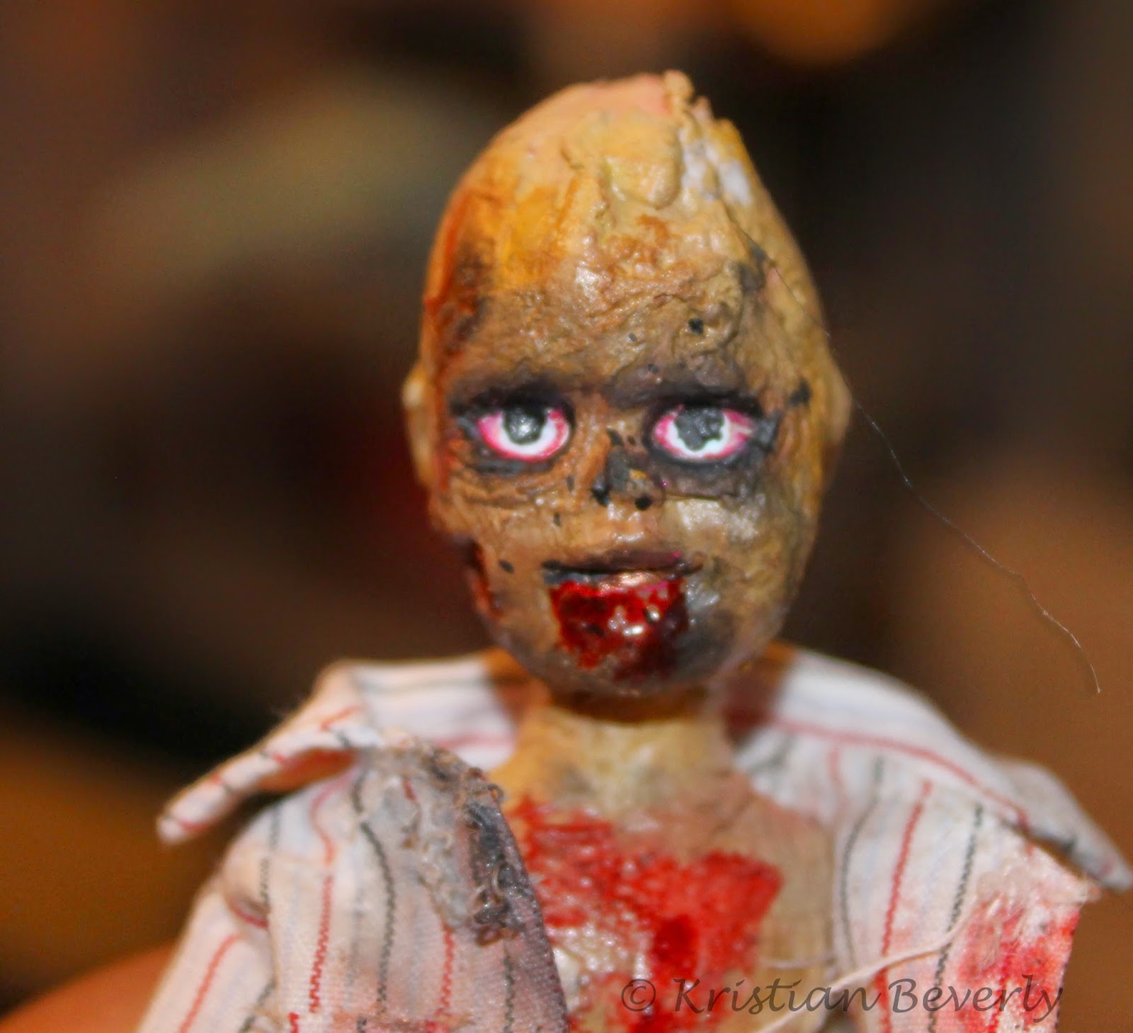 I added the black, the fake blood, and such. Painted the eyes with a rim of pink on the outside.