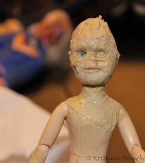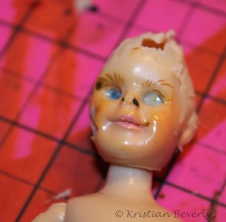 Then I dremeled the plastic hair off of the doll’s head. It looks pretty sad, doesn’t it?