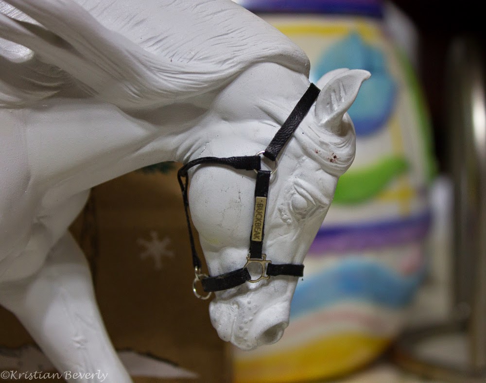I made a halter for my Chex resin. He may be naked, but he looks nice in a halter. And it even has his name on it! 🙂
