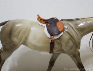 I directed my attention elsewhere. I’ve been having good luck with model horse tack making so I decided to play with my english saddle pattern. The flaps are always my biggest problem area. I see what the real saddle looks like, but having my hands and eyes coordinate enough to where it transfers well into paper can be the biggest struggle.