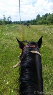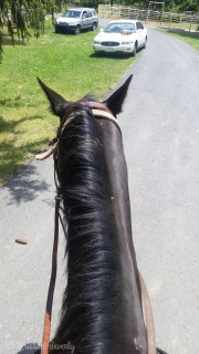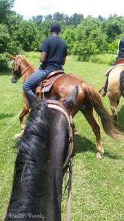 After the pony ride I rode back with the rest of the group and we saddled up other horses and went on a trail ride. The farm has nice trails and it was beautiful out today. I rode a QH mare named Lady. We had a few moments of can we not have a bucking fit right this second, but other than that she was a good mount.