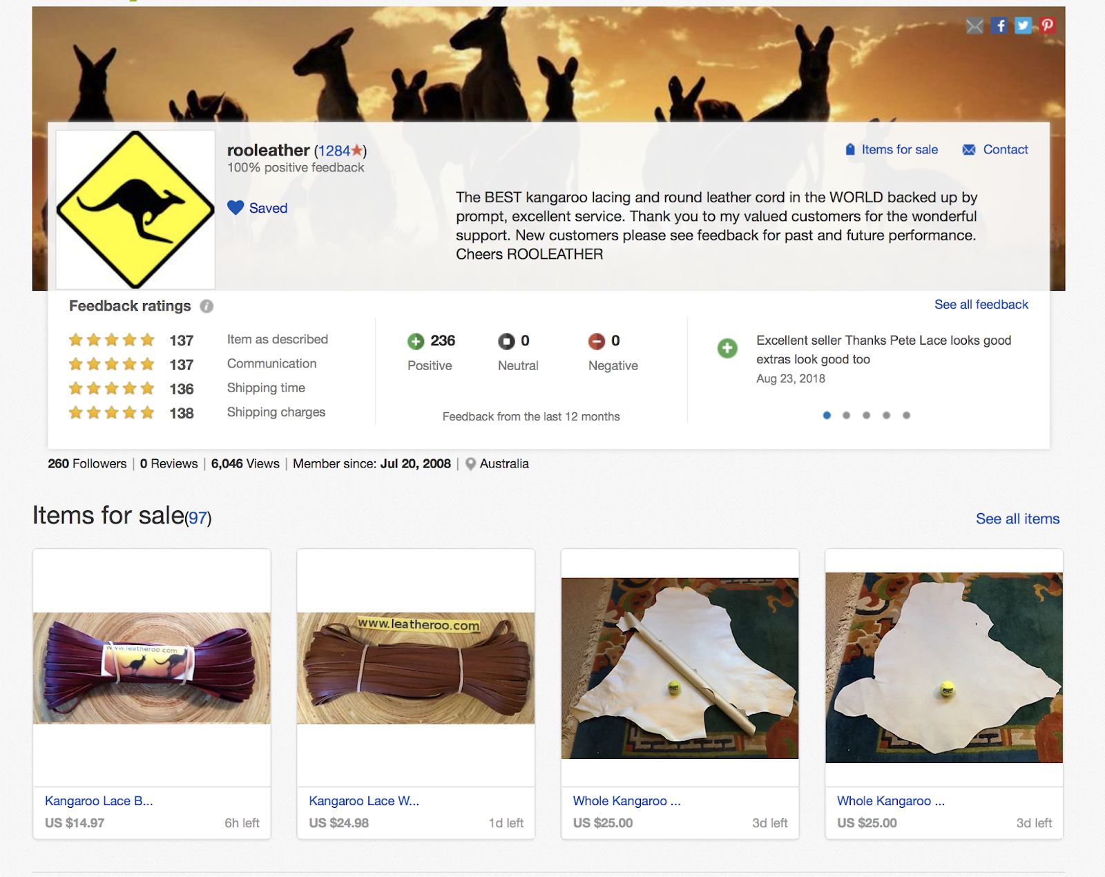 Another seller that sells kangaroo lace is rooleather on eBay.