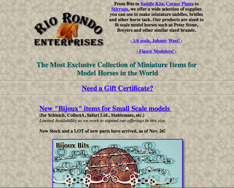World of Model Horses is very similar to Rio Rondo. She sells trees, bits, and other hardware. Here you’ll find western trees but also Native American, side saddle, and even English saddle trees.