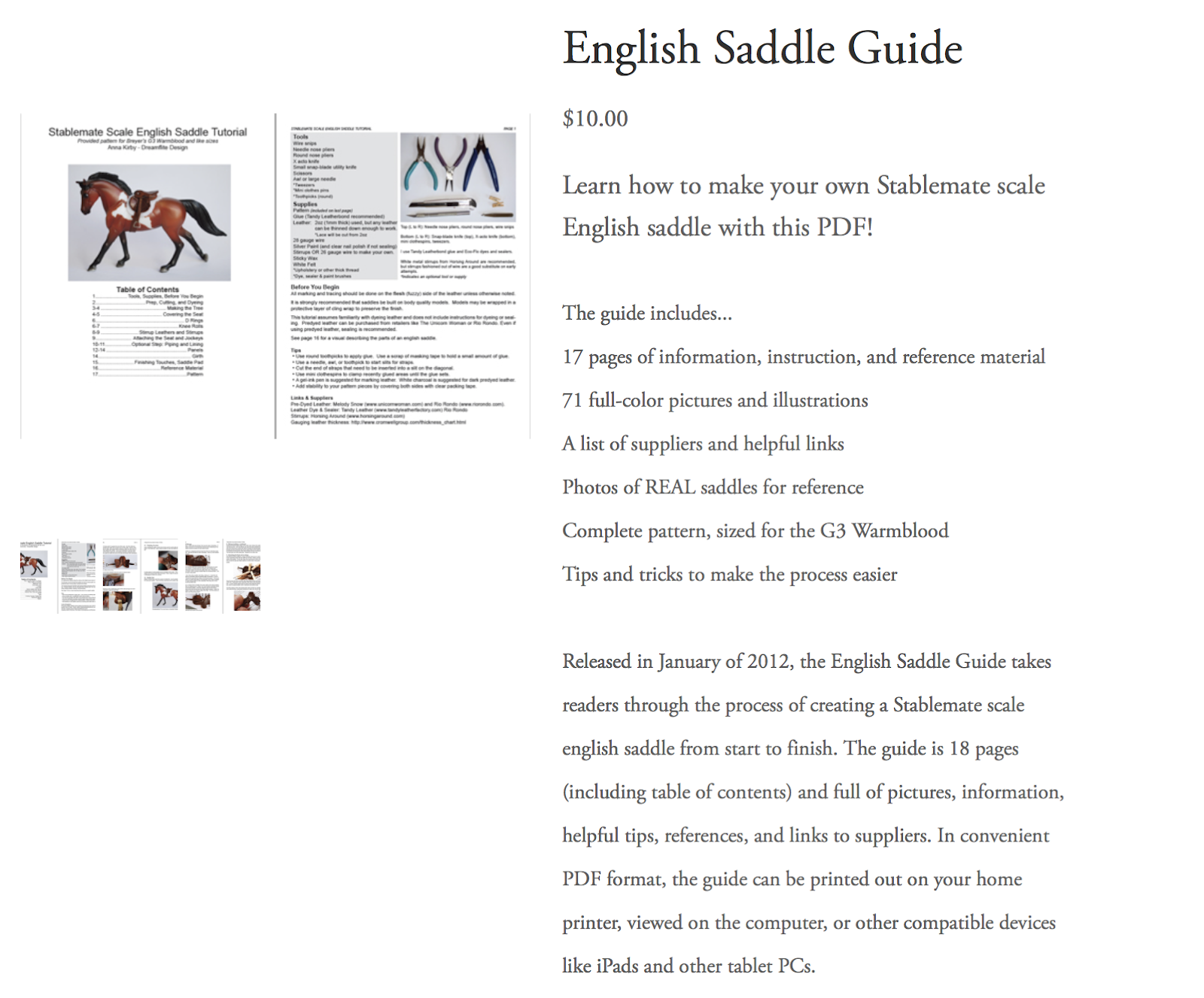 Timaru Star II-Sue is one of the best tack makers in the hobby. She’s an awesome braider and saddlemaker. She wrote a book about tack that includes numerous how-tos for various types of tack. It’s been reprinted numerous times and she now offers it in PDF form. Go get it.