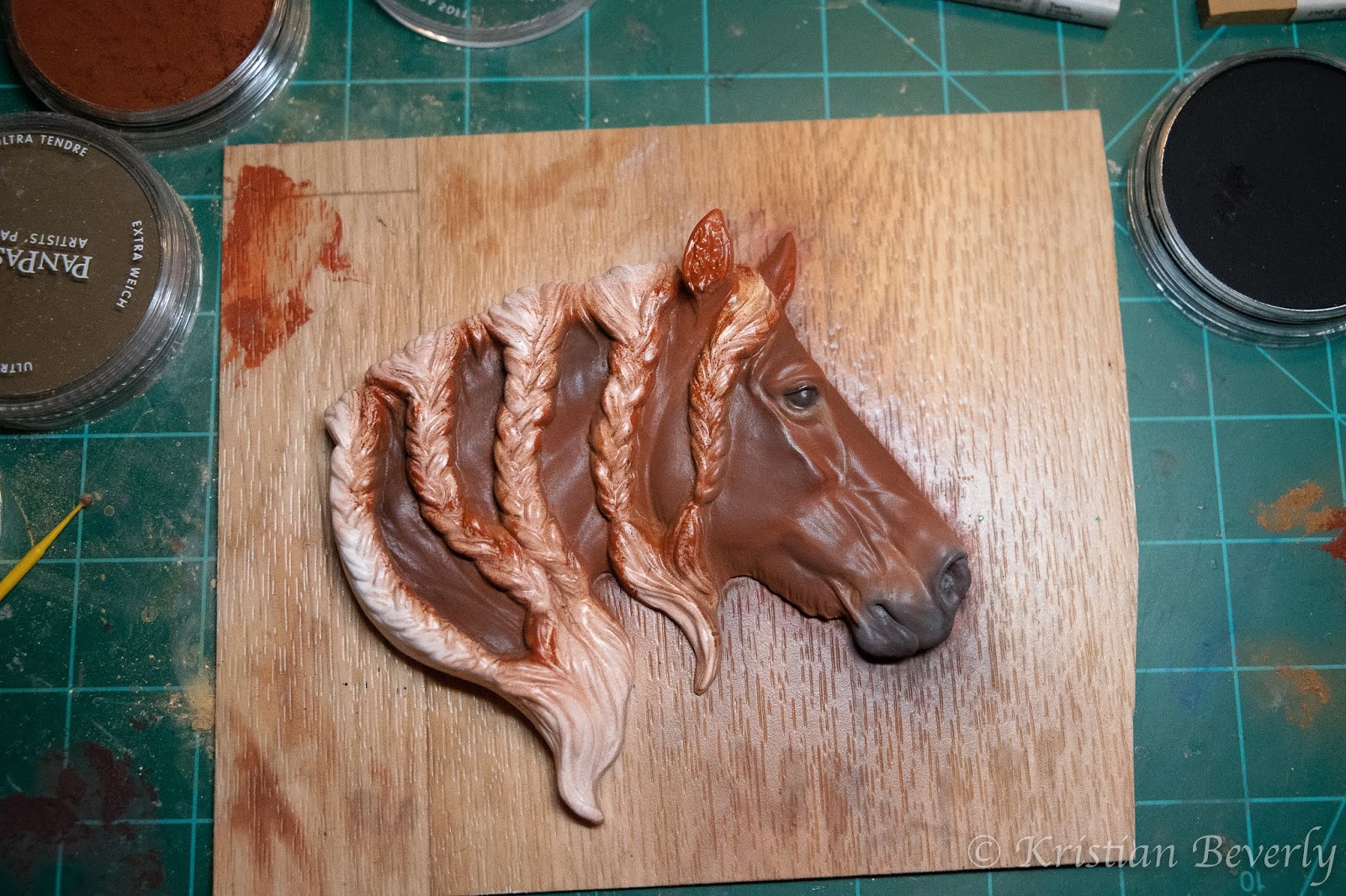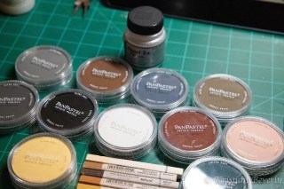 After a few layers, I decided this wouldn’t work. So I started over and did a layer of acrylic paint. Next came shading and highlights with the pan pastels.