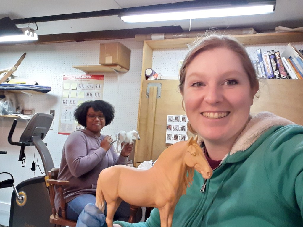 I didn’t finish him by the deadline, which is fine. Half way through the month, I visited Maddie Klein’s house for a painting party. I added more spots to mine, and Maddie worked on her pretty buckskin!