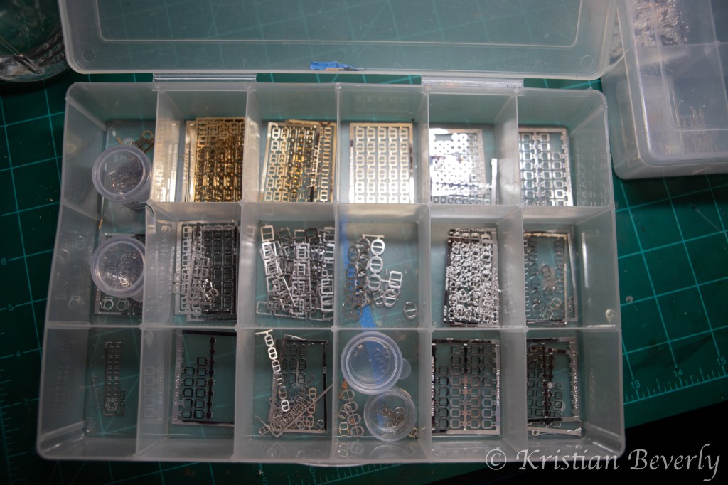 For years I’ve used the same single container. I poured out all of my hardware and began putting them into similar groups. I didn’t realize I had so many bits or D rings!