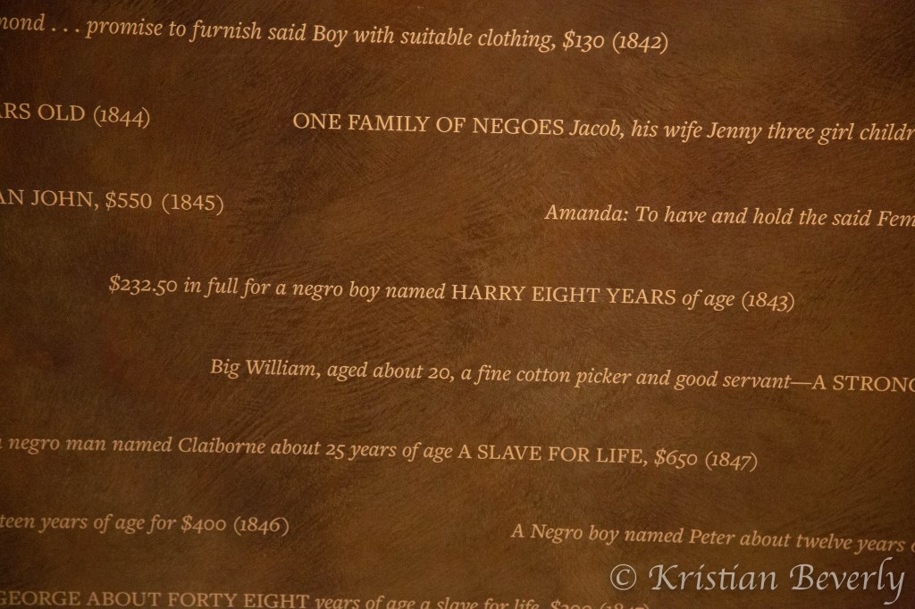 A hard wall to read was full of the descriptions of enslaved people sold at auction.