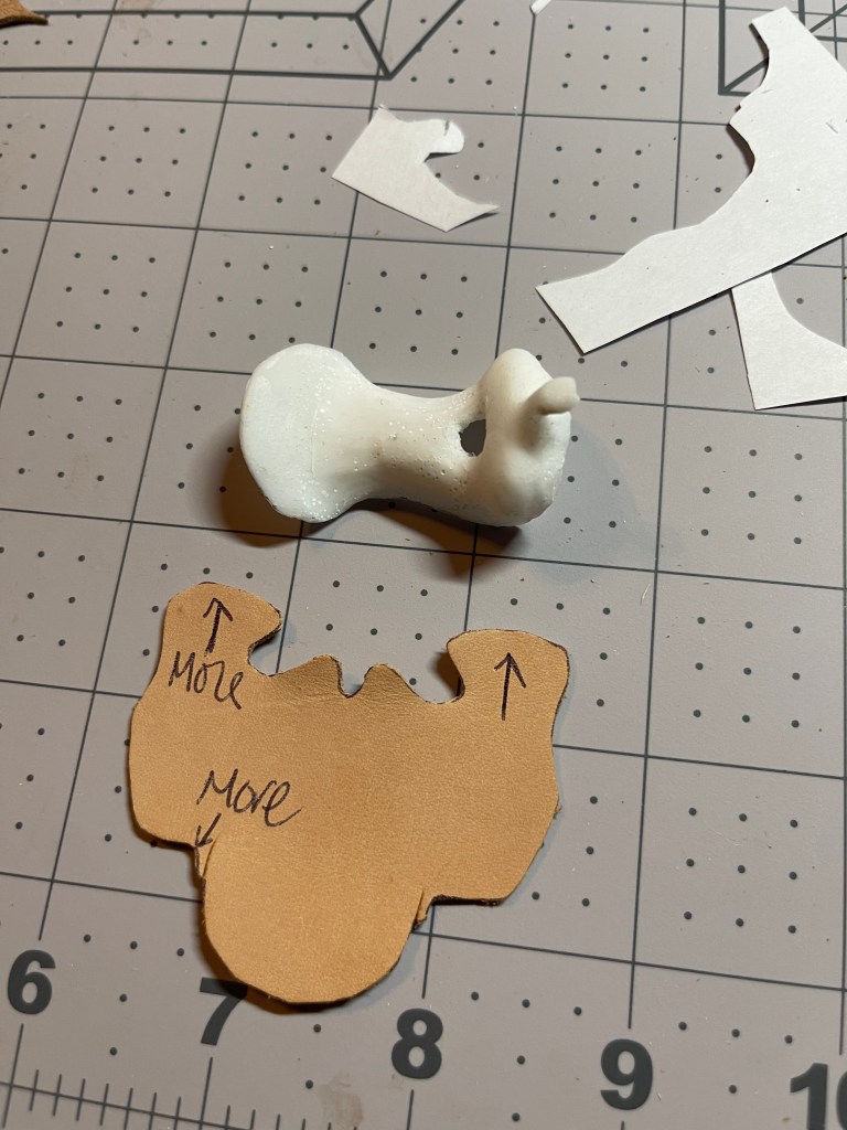 Now comes pattern making. I copied and scaled down patterns I have and whittled it down until it was the right size. Only one piece needed made from scratch. I wanted the seat and seat jockey to be one piece. It took a few tries with paper and leather but I have it. Hopefully. Now to the fun part!