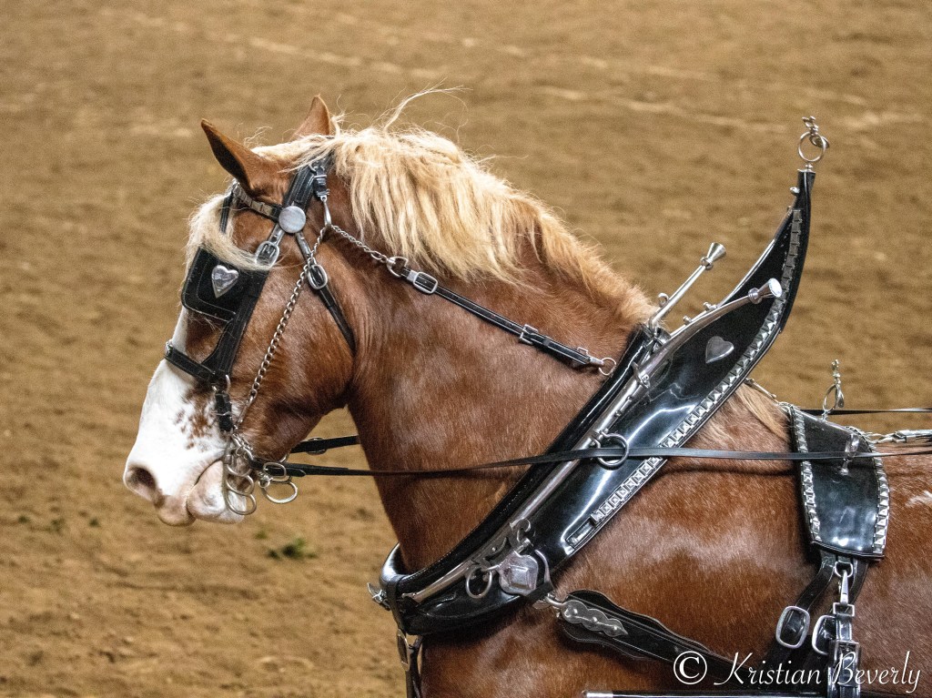 I sat and watched the draft horse demonstration. I enjoyed watching them go in their single, team, and four-horse hitches. The carts and wagons were equally as impressive.