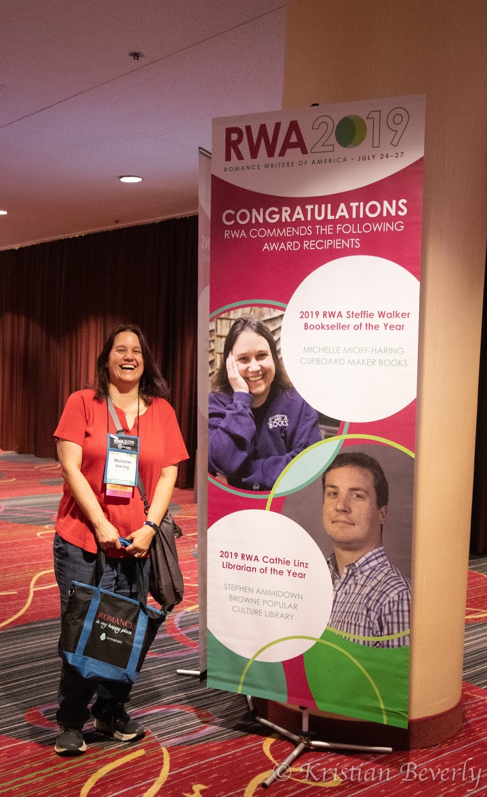 As we signed in I noticed this. Michelle was Bookseller of the Year so I made her take picture with her face.