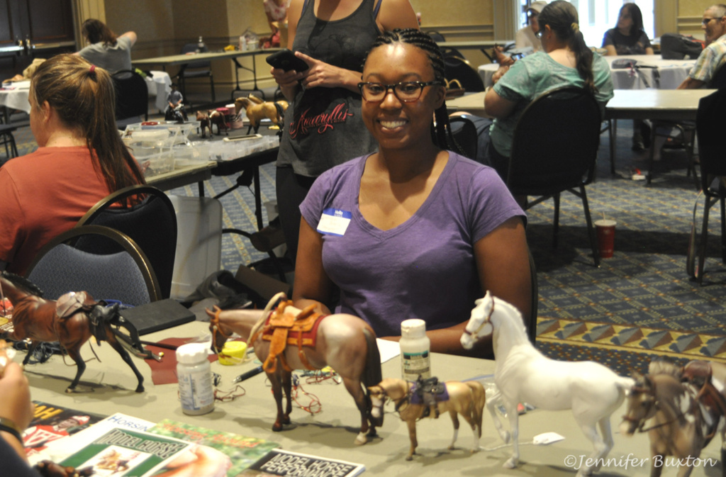 I met phenomenal artists and caught up with others I haven’t seen in a while. I also met fellow blogger Jennifer Buxton. Her blog has been my favorite model horse blog for years so I enjoyed meeting her in person. She also is on top of taking pictures of hobby people, which I managed to forget to get a picture of myself at my table! Thanks Jennifer.
