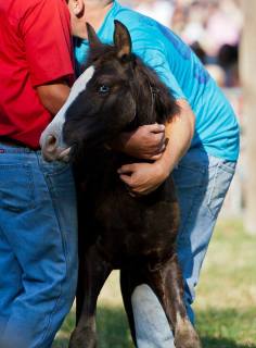 He has a large band. I think one of the largest if not the largest one of the Assateague Stallions.