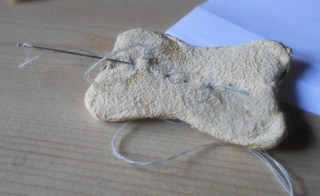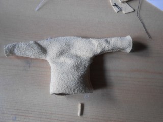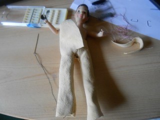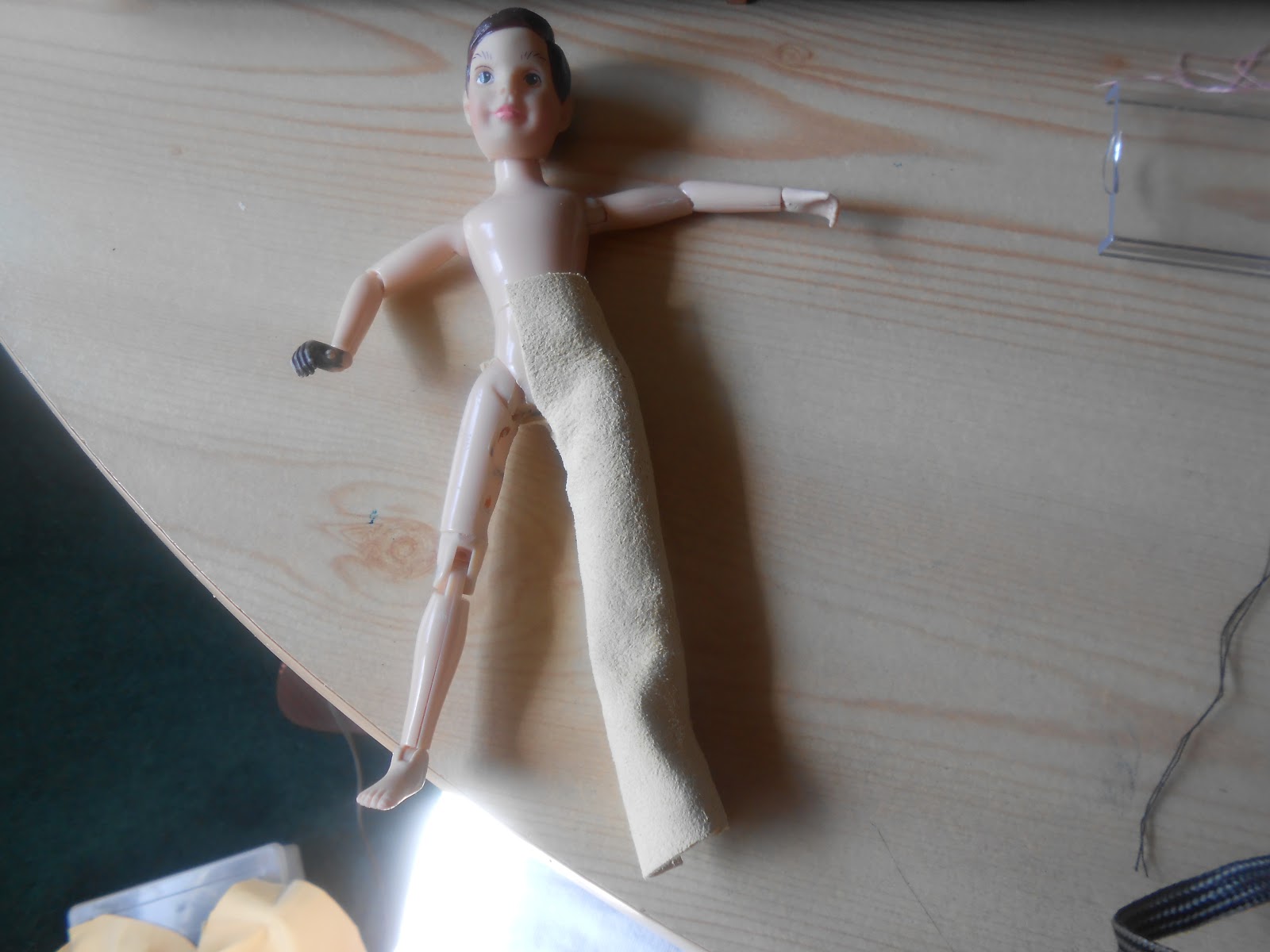 To make the clothes I made a pattern. Next I cut it out of chamois,