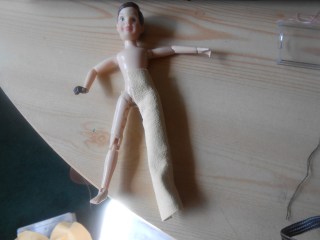 Here he is! Too bad I wasn’t patient enough to paint his face and arms, now I’ll have to do that. Then add new black hair.