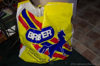 Time hasn’t been kind to him. I have zero idea about where his other front leg is. For real. No idea. He had wings at some point, but they broke off too and have been lost. I made them out of chopsticks and fabric. I spray painted it all.