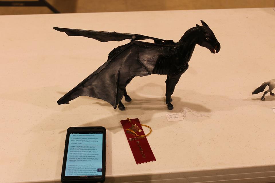 Back when I could show in the Breyerfest Youth Show, I sculpted a Thestral. He started out as a Morgan model. I think I made him the last year I could show in that show–so I was 16–making it seven-ish years ago. He won his unrealistic custom class.