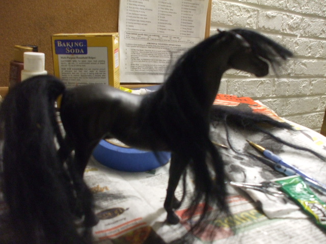 Today’s victim was an old safari horse, that I’ve had for forever. I envisioned him to have a lowered neck, and to be more performance friendly.