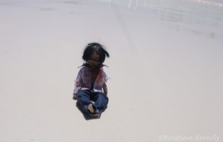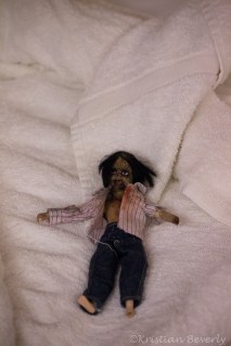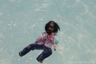 Swimming in the ocean was no issue for the doll. His paint, blood, nor hair came off!