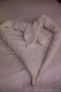 Each night, the room steward would make towel animals. Carl posed with them too.