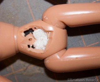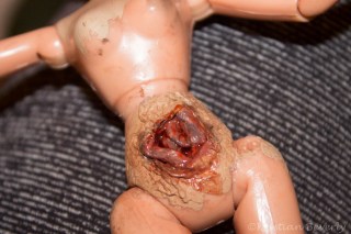 So what does that all mean? Nothing really. It’s just one of my favorite months for those above reasons. And because of The Walking Dead, that means zombie dolls. The first doll is for the giveaway (which the winners have been very patient!). I wanted to do something more gross with the doll. I decided on exposed guts. The tricky thing with making guts was making sure that the additions allowed for mobility.