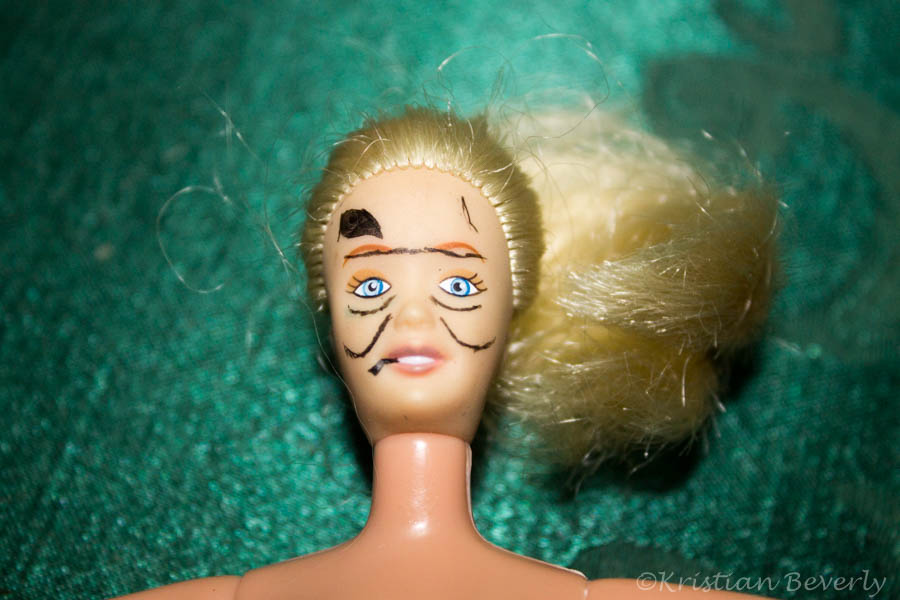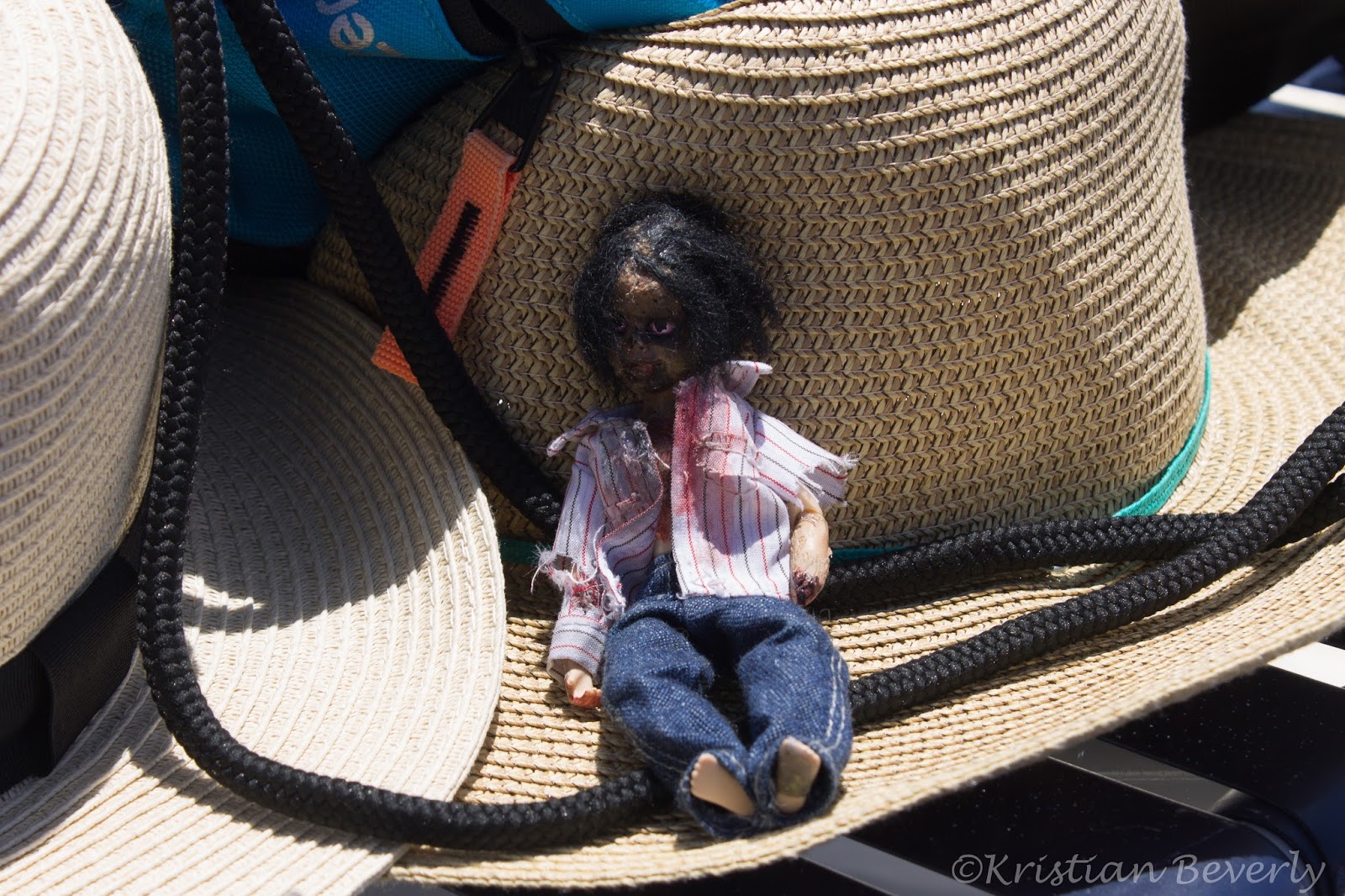 Swimming in the ocean was no issue for the doll. His paint, blood, nor hair came off!