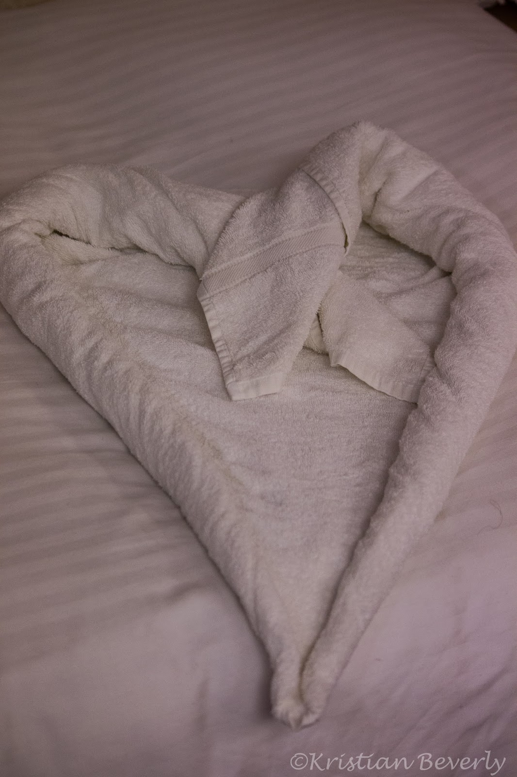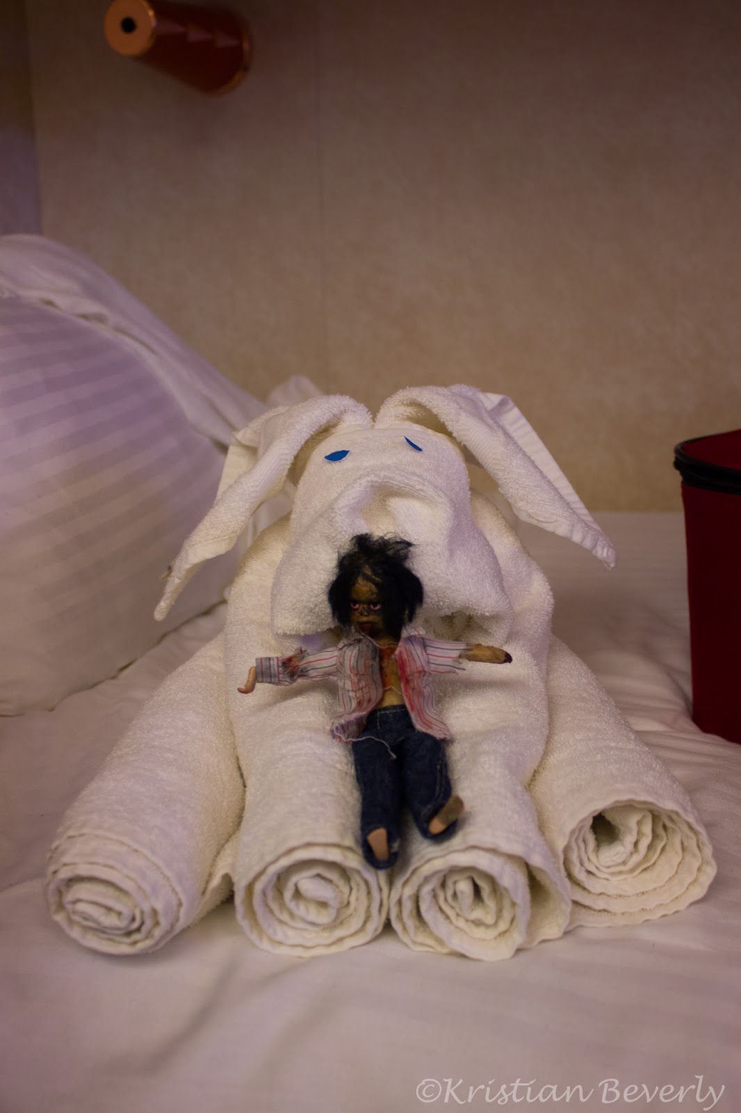 Each night, the room steward would make towel animals. Carl posed with them too.