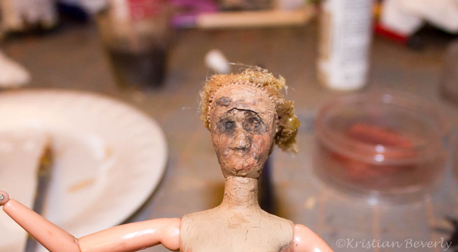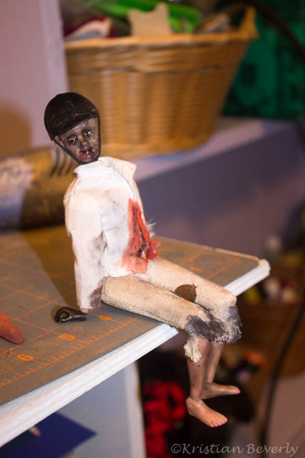 So what does that all mean? Nothing really. It’s just one of my favorite months for those above reasons. And because of The Walking Dead, that means zombie dolls. The first doll is for the giveaway (which the winners have been very patient!). I wanted to do something more gross with the doll. I decided on exposed guts. The tricky thing with making guts was making sure that the additions allowed for mobility.