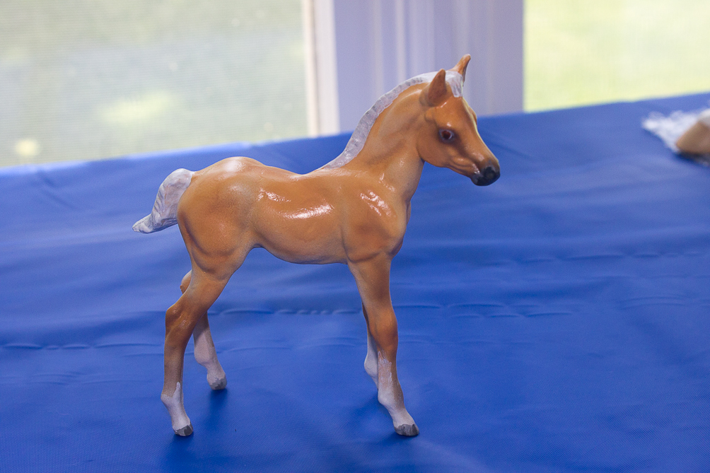 Right before Breyerfest I finished painting my Feather Fund donation. Every year at Pony Penning, The Feather Fund buys a pony for the winner of their annual essay contest. Sometimes more than one kid wins and is given a pony. During Pony Penning Week, The Feather Fund has a model horse auction to fund the buying of the ponies. This year I was only able to do one model.