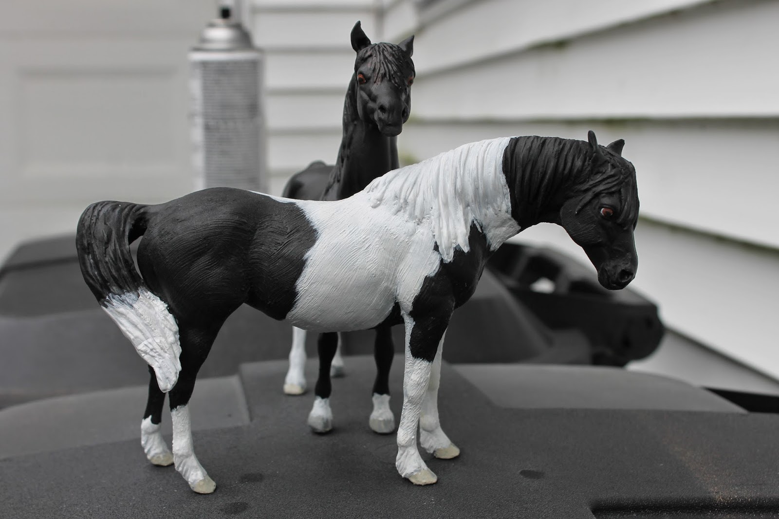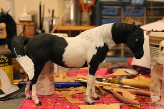 Which brings me to the point of this post. It’s that time of year again. Yes, it’s summer and there’s no school, but it’s time for the benefit model horse auction for the Feather Fund. This year will be my second time donating and my donation pieces are more done than not. I plan on doing two, with the possibility of one more if the model cooperates. I have no idea about which island pony they will be painted after, but in my head they will be fluffy Chincoteague Ponies. (Since this picture, ears and tails have been hacked off, heads have changed positions, and padding has been added so they look more ponyish).