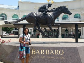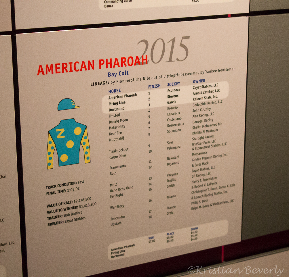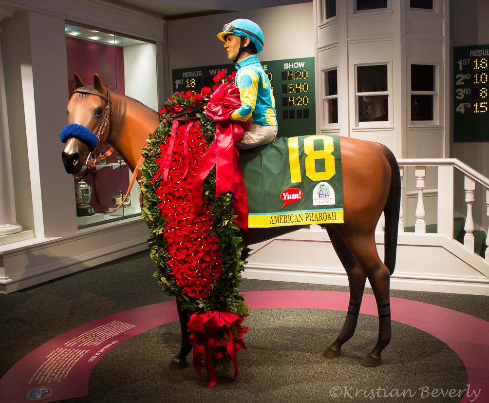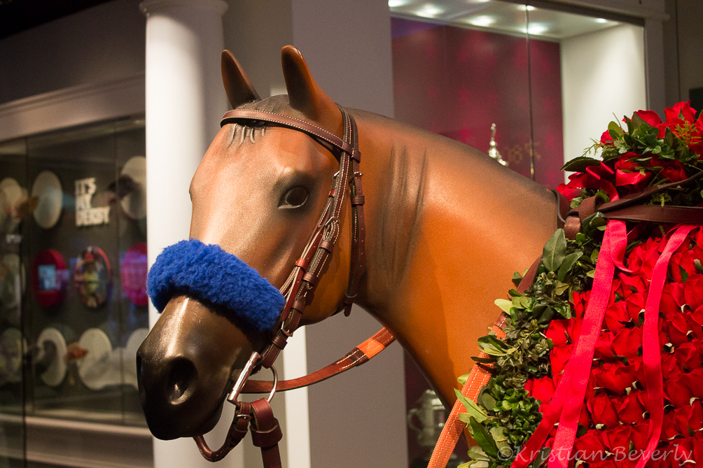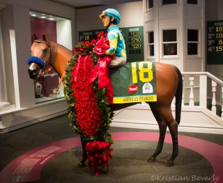 The Winner’s Circle has a manikin of the current winner of the Derby in it. It’s updated each season, and this year it’s American Pharaoh.