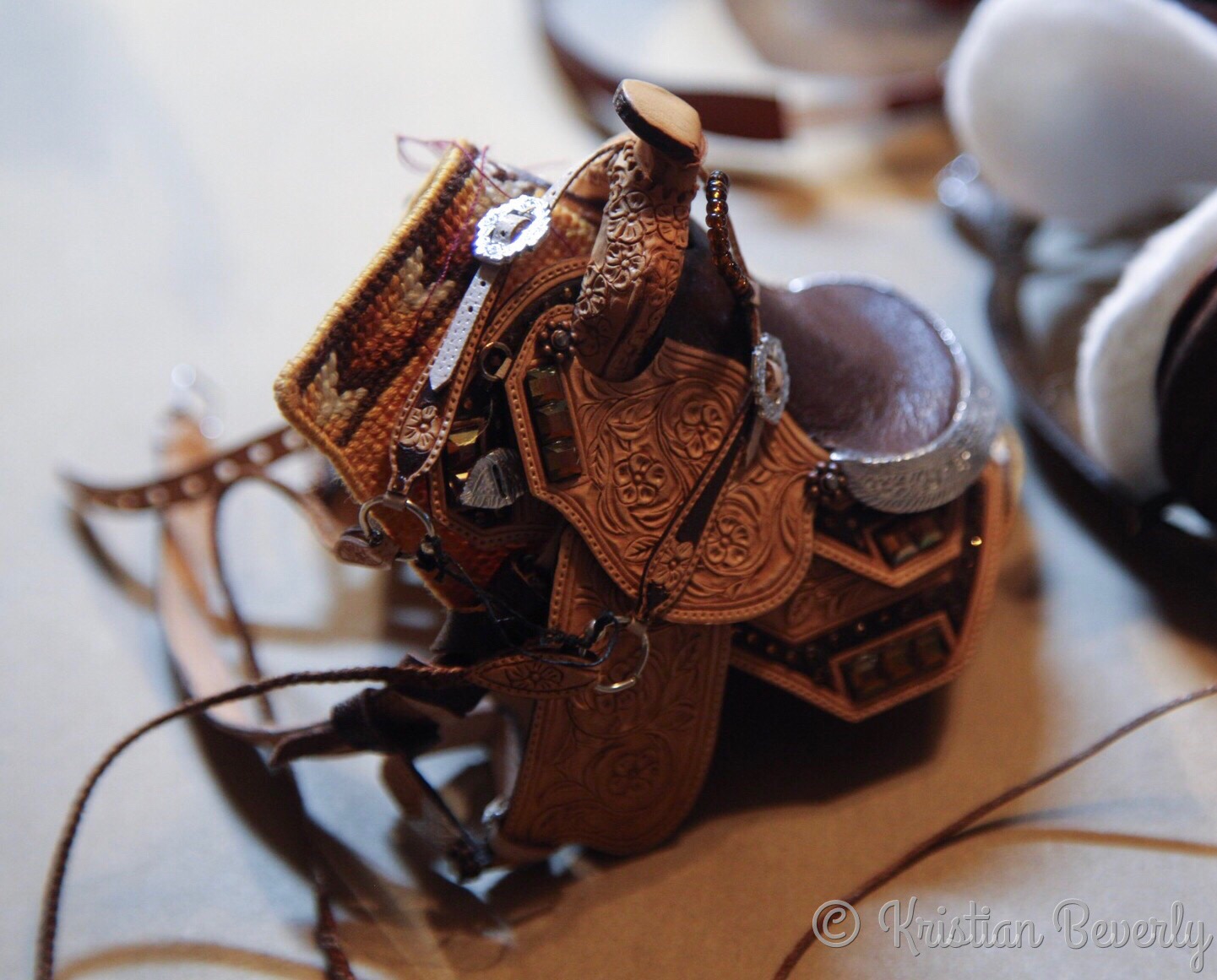 Even though painting has been more of a learning experience than an actual finished model, tack making has been going well. Here’s a nameplate halter tree. I’ve been making donation halters for NaMoPaiMo since January. I put the last nameplate on the other day, so they’re in the mail!