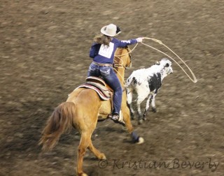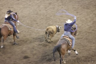 Then the oldest pair, two Holstein mixes that are three years old, were hitched to a two wheeled ox cart and were led around the arena.