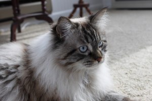 My dear cat actually is nothing like a lion. He really is a big tame whiny pussy cat. He did live up to be everything I wanted though. I wanted a large cat that was fluffy with blue eyes and who liked to talk a lot. He morphed into that.