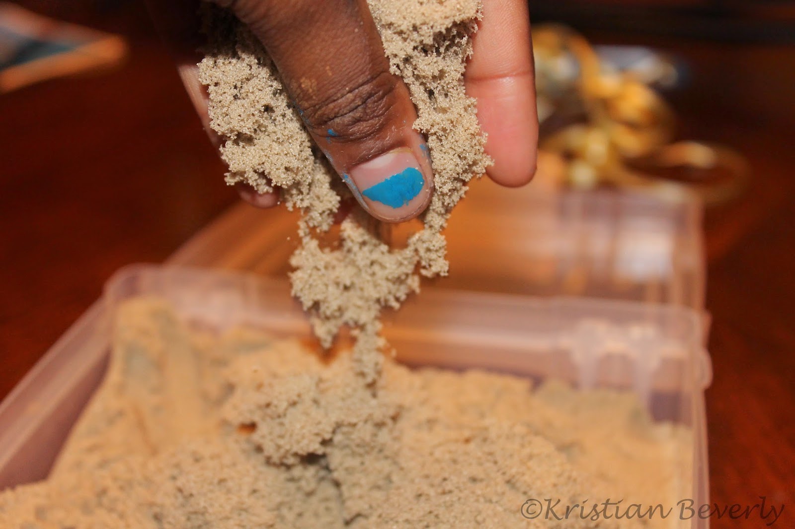 It’s a wonderful substance that doesn’t even feel like sand to me. It’s better than actual sand because it doesn’t make a mess. So yes, I was a 5 year old in gleeful play land with this stuff.