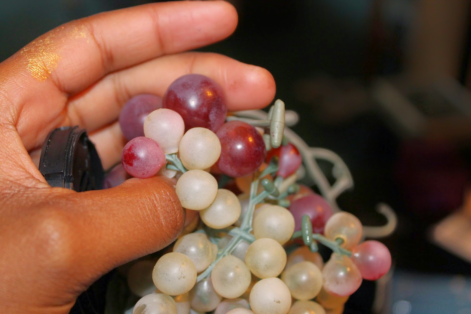 So I grabbed my plastic/fake grapes. I use these for balloons since reading about them on a dollhouse website. They’re cheaper and you get more. Plus no shipping! And they’re really flexible.