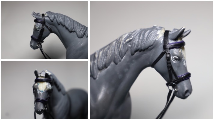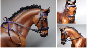 This bridle is made for True North. It has working buckles, raised and padded nose and browband. The reins are purple and black to look like rubber reins. It’s $65 ppd in the USA. International shipping is exact.