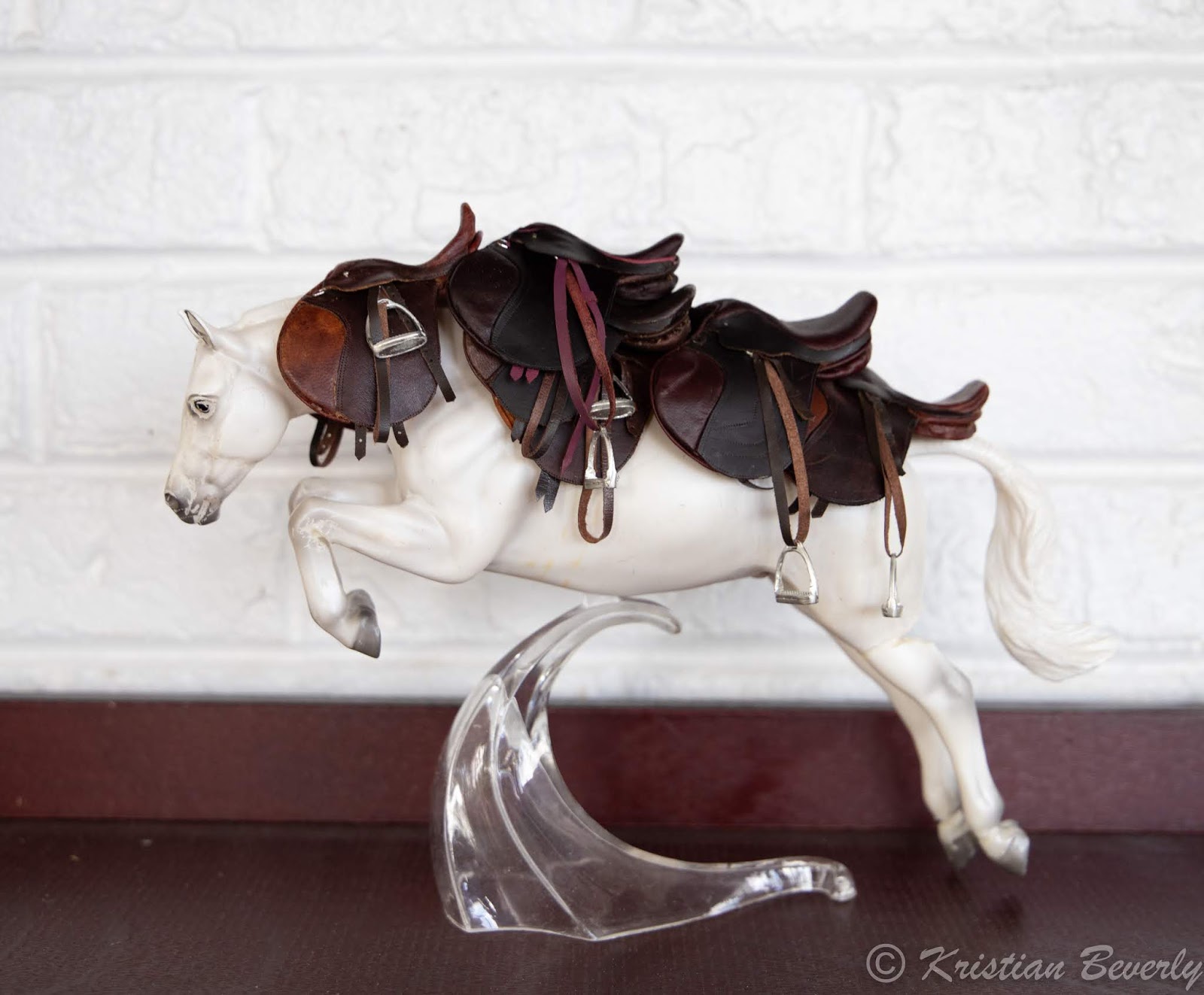 The second bridle was made for the Peter Stone pony. I has a raised and padded noseband and browband. It also has working buckles. It’s $65 ppd in the USA. International shipping is exact.